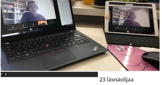 ![]() Oi muistatko vielä sen uutisen? -tilaisuudessa Median museo ja arkisto Merkissä 29.1. Verkosta virtaa -opastaja Ulf Sthal Oulusta esitteli etänä lentokonesimulaattoria. Järjestösuunnittelija Pekka Vartiainen (oik.) juonsi. |
